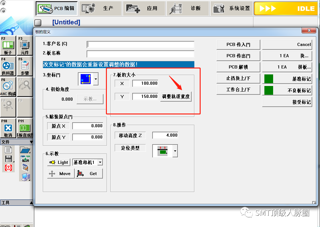 3.調(diào)整軌道寬度,點擊PCB傳入。