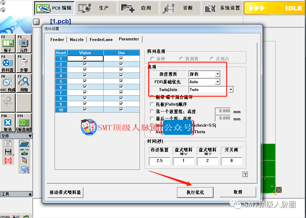 9.程序優(yōu)化,優(yōu)化之前把元件要用的飛達類型、供料間距、吸嘴調(diào)好,點優(yōu)化后系統(tǒng)會提示你保存,保存到你想存的文件夾后設置飛達數(shù),執(zhí)行優(yōu)化,優(yōu)化好后點接受。